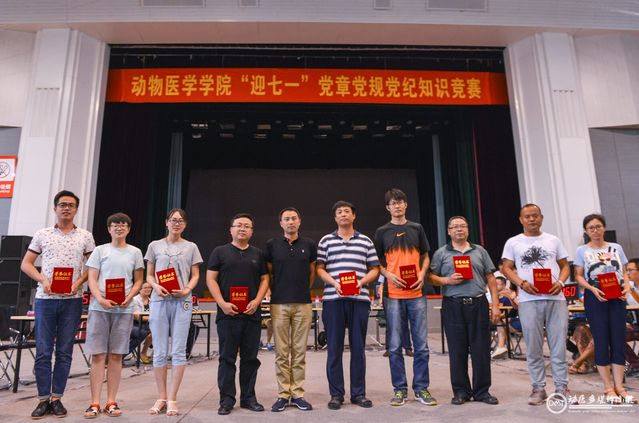 接着知识竞赛正式开始。竞赛共分为必答题、抢答题和风险题三个部分。各位参赛选手以快速的反应能力和强大的知识储备,不断刷分,令在场观众大为叹服。抢答环节更是扣人心弦,争夺激烈、此起彼伏,将现场气氛推向高潮。经过一番角逐,最终本科生党支部获得第一名,人兽共患病研究所教工党支部、研究生党支部获得第二名,预防兽医系教工党支部、实验教学中心党支部、人兽共患病研究所学生党支部获得第三名。比赛间歇,杨振国教授和李小兵教授为大家带来两首红歌,比赛结束学院领导分别为获奖选手和代表队颁奖。